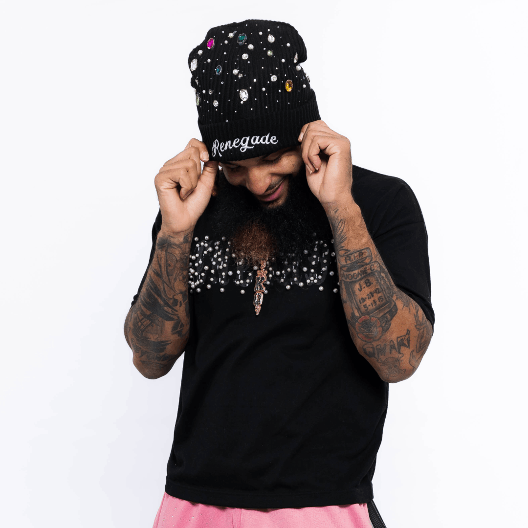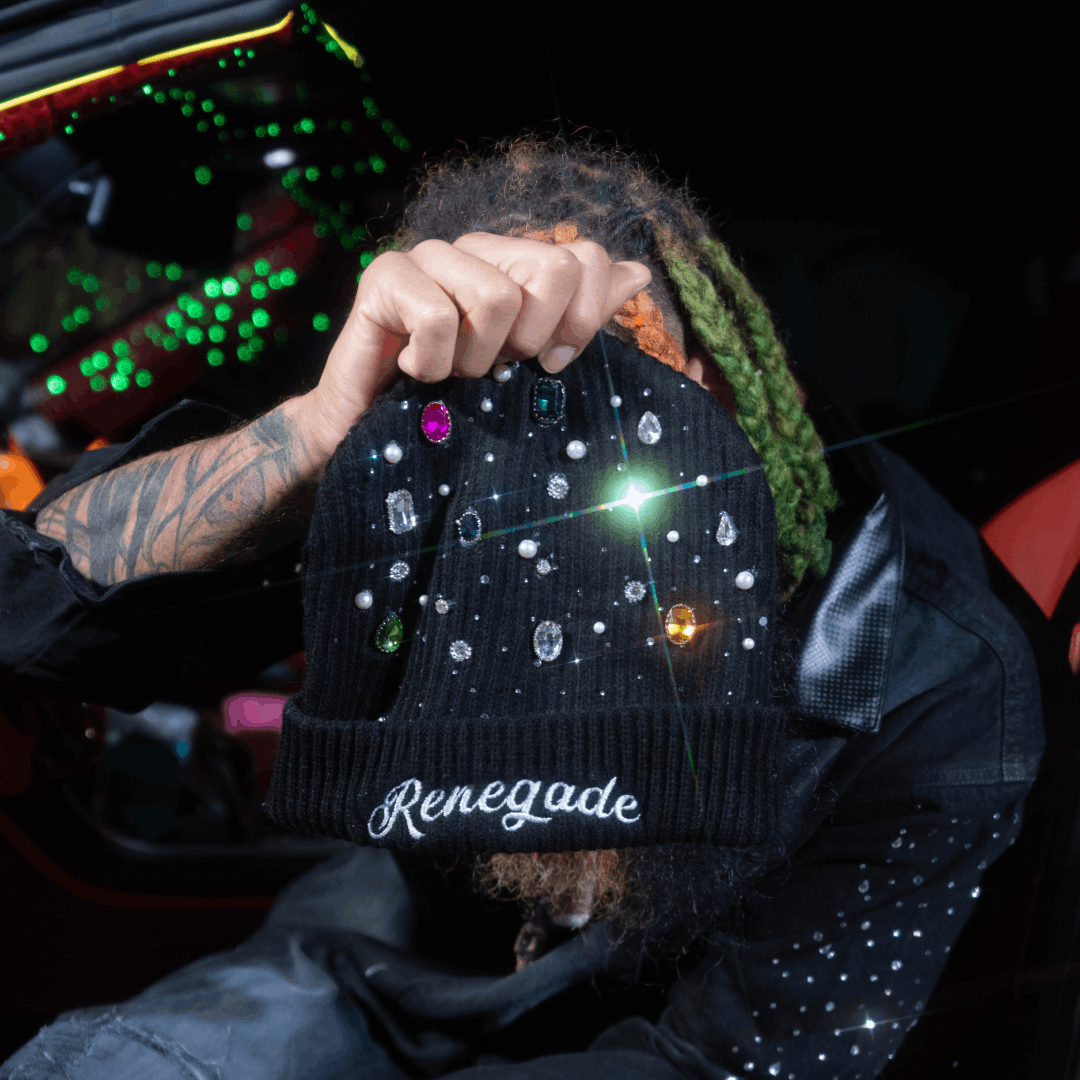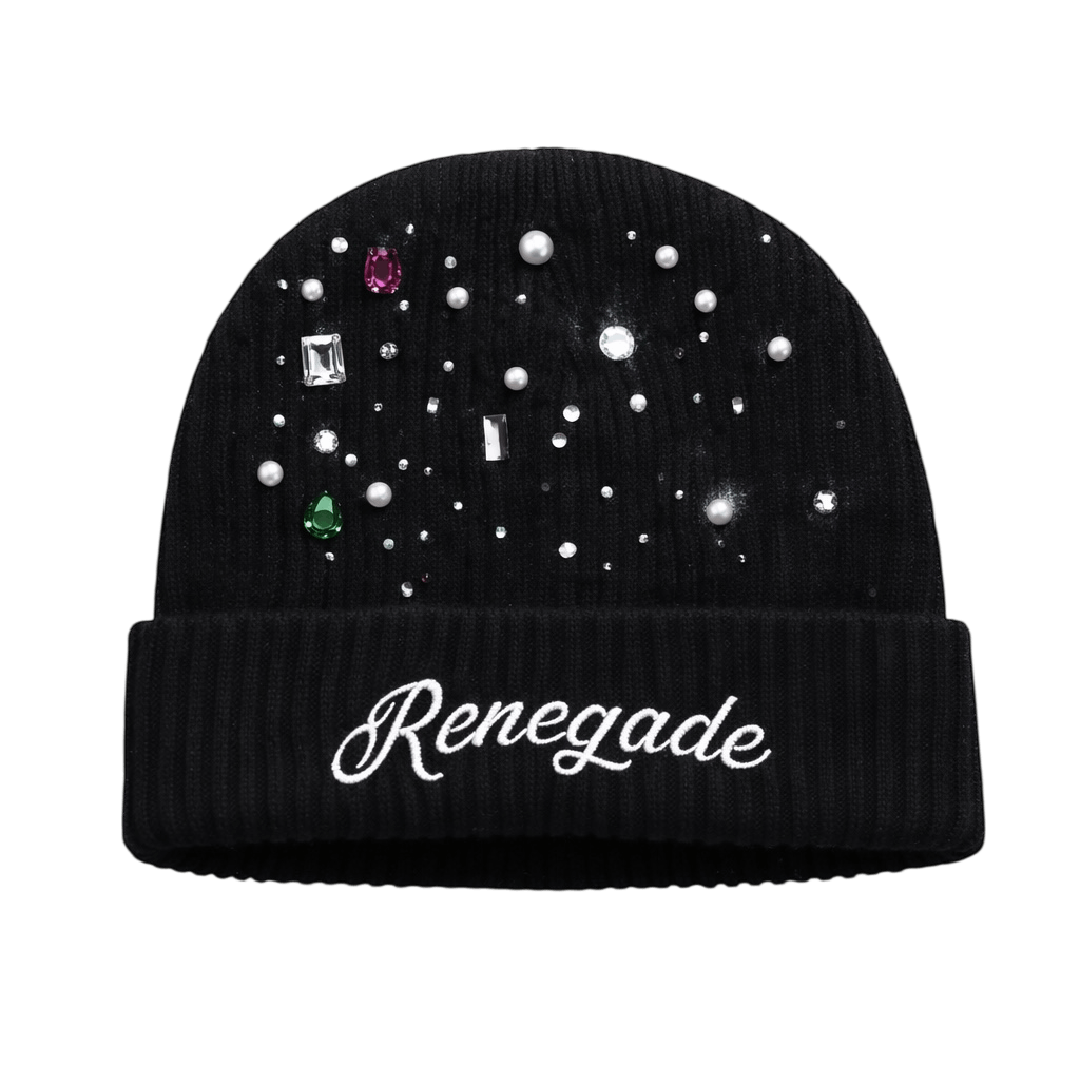 A statement beanie designed to elevate any fit. Soft, warm, and finished with rhinestone detailing that catches light without doing too much. Clean branding, premium feel, made to stand out while staying effortless.